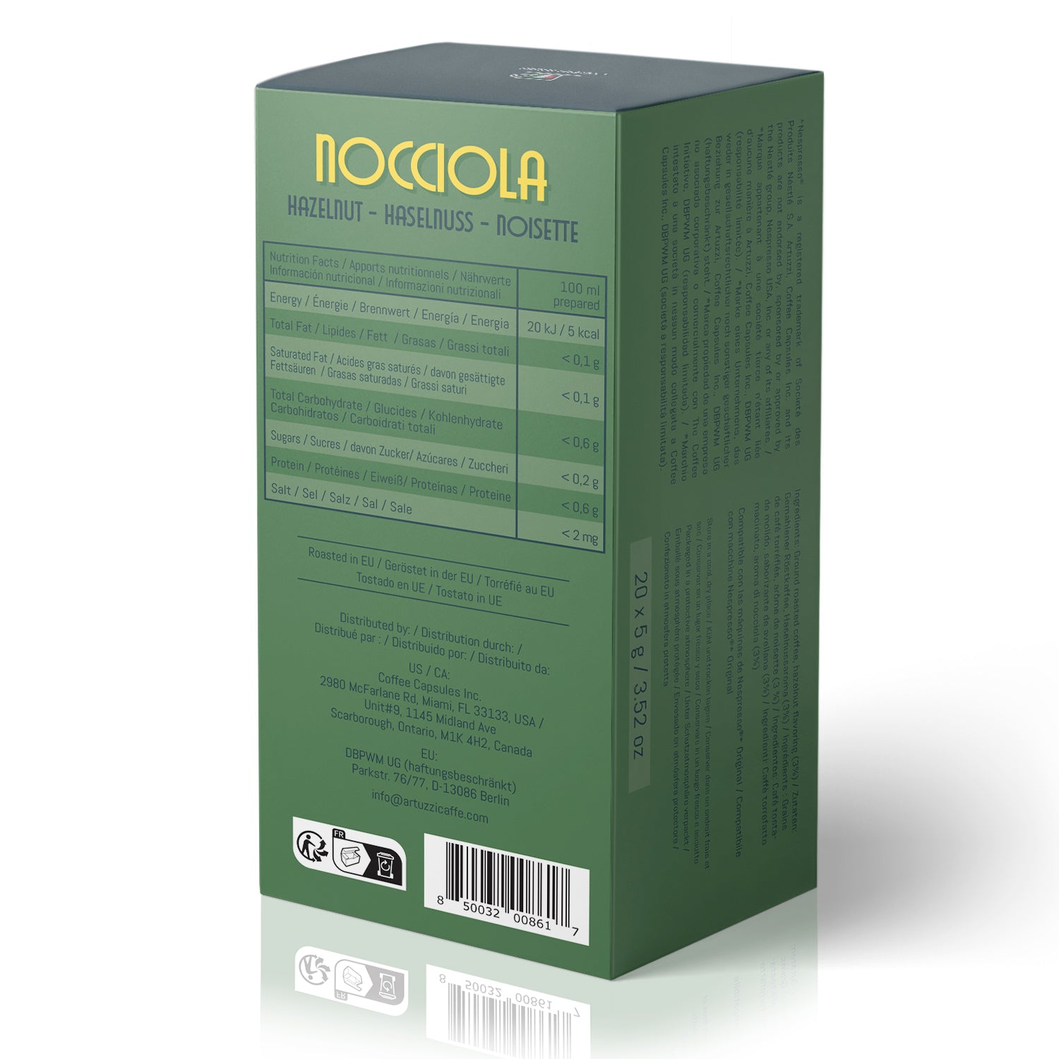 This dark roast espresso combines the nutty, rich and smooth Hazelnut flavor with the high intensity of a traditional Italian roast. Each Artuzzi pack contains 20 aluminum pods that seal the coffee aroma for ultimate freshness. These pods are compatible with Nespresso Original machines and are designed to be recyclable.